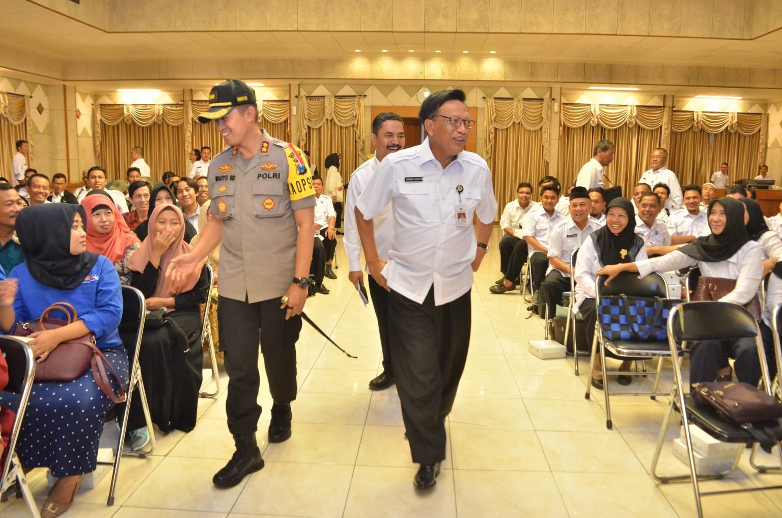 Tampak hadir Kapolres AKBP Wahyu Sri Bintoro, PLT. Kepala Dinas Sosial Gresik Abuhasan, seluruh Kapolsek serta para Satuan Tugas Pendamping program PKH dan bantuan social di Kabupaten Gresik.