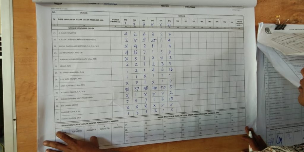 SURABAYAONLINE.CO, Sumenep —  Pelaksaan pemilu serentak yg dilaksanakan pada hari rabu 17 April menyisakan polemik di kecamatan ganding. Panitia pelaksana (PPK) kecamatan ditengarai tidak netral. Hal ini berdasarkan laporan dari beberapa pihak yang mendapati adanya tindak kecurangan ditingkat desa yg dilakukan oleh salah satu oknum panitia pelaksana di tingkat desa (KPPS). Kecurangan yg dimaksud adalah mencoblos beberapa surat suara untuk memenangkan salah satu calon anggota Dewan Pertimbangan Daerah (DPD). Menurut pelapor hal ini atas arahan PPK Ganding.