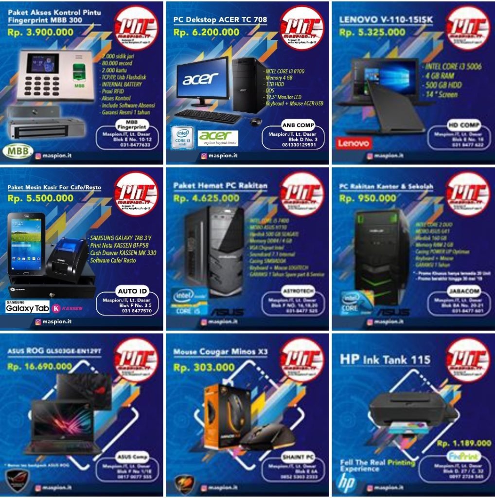 . Aksesori lengkap : flashdisk, hardisk, memorycard, cdwriter, kabel hdmi, projector, printer, fingerspot, brankas, refill tinta, hires paper, digital printing, dll.