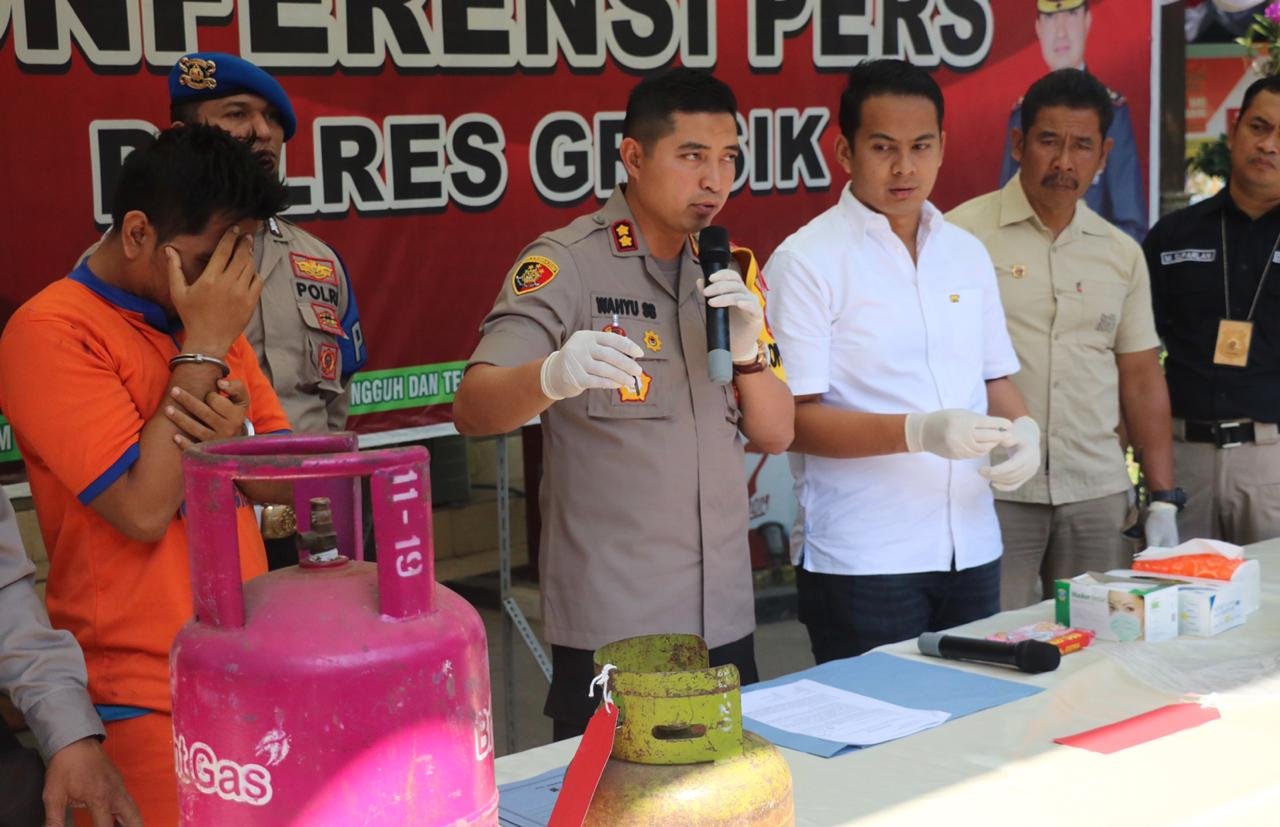 Kapolres Gresik AKBP Wahyu S Bintoro mengatakan tabung elpiji hasil oplosan oleh pelaku kemudian dijual ke sejumlah toko toko kecil di daerah Gresik pinggiran.