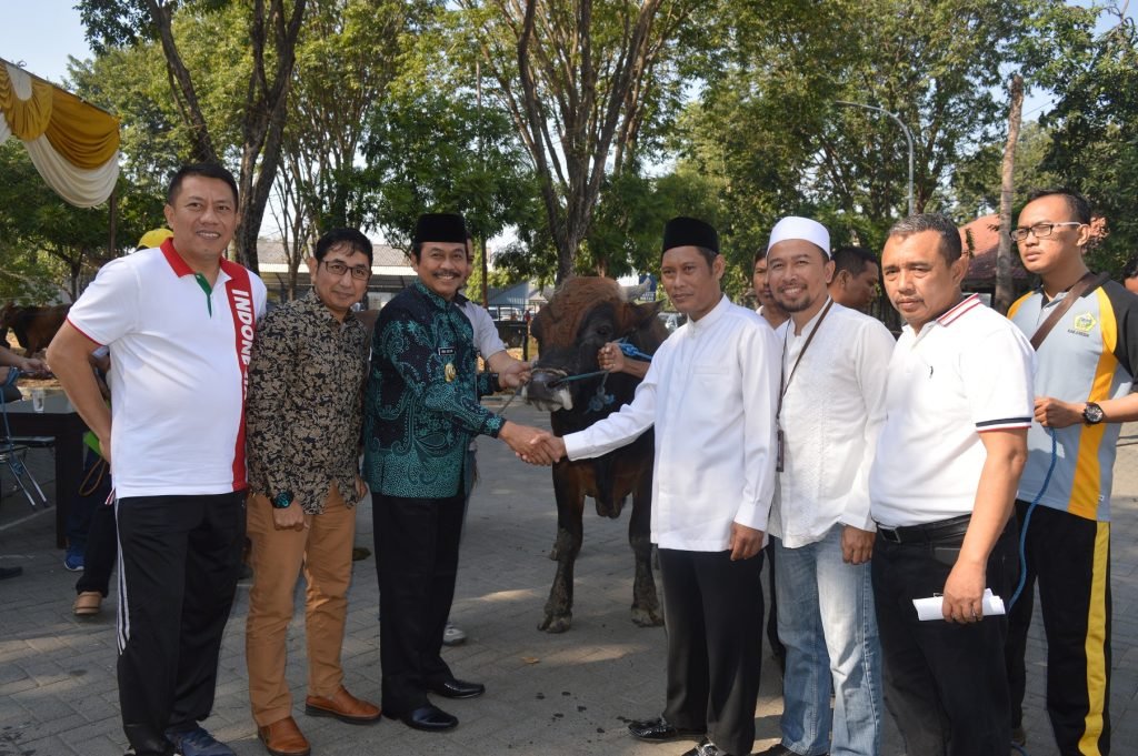 SURABAYAONLINE.CO, GRESIK – Wakil Bupati Dr Mohammad Qosim, atas nama Pemerintah Kabupaten Gresik membagikan 104 hewan Qurban berupa 29 ekor sapi dan 75 ekor kambing kepada masyarakat, di halaman parkir timur kantor Bupati Gresik pada Jum’at (9/8).