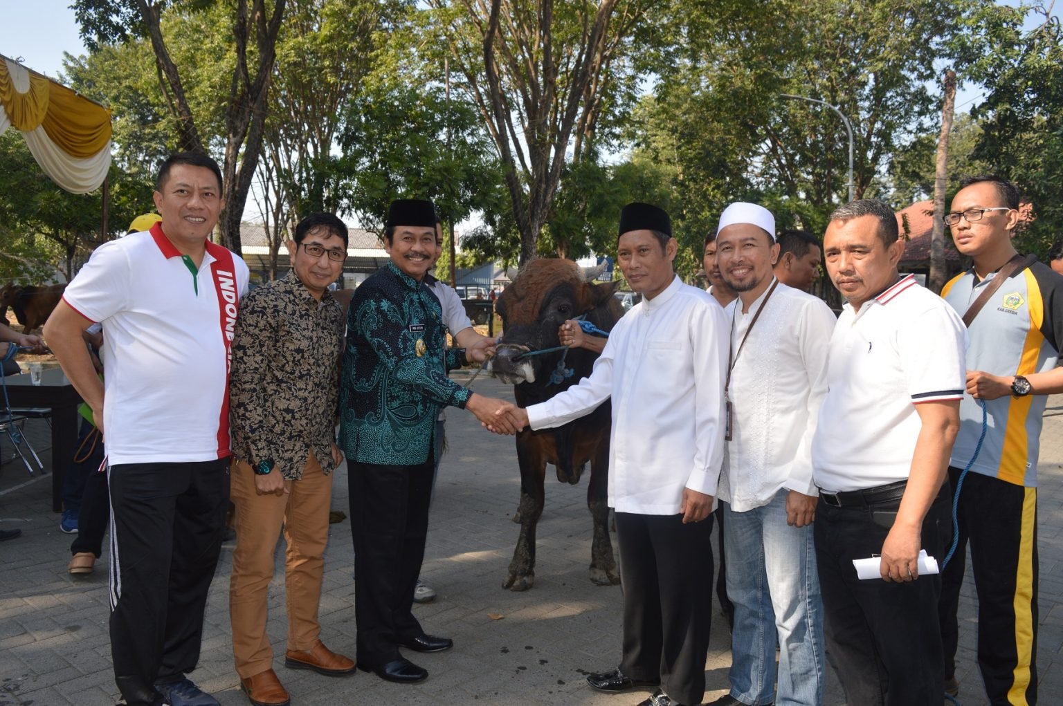 SURABAYAONLINE.CO, GRESIK – Wakil Bupati Dr Mohammad Qosim, atas nama Pemerintah Kabupaten Gresik membagikan 104 hewan Qurban berupa 29 ekor sapi dan 75 ekor kambing kepada masyarakat, di halaman parkir timur kantor Bupati Gresik pada Jum’at (9/8).