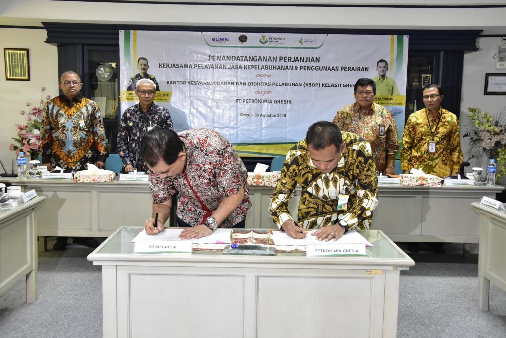 SURABAYAONLINE.CO, GRESIK – PT Petrokimia Gresik (PG), anggota holding PT Pupuk Indonesia (Persero), menandatangani perjanjian pelayanan jasa kepelabuhanan serta penggunaan perairan untuk bangunan dan kegiatan lainnya di Terminal Untuk Kepentingan Sendiri (TUKS), dengan Kantor Kesyahbandaran dan Otoritas Pelabuhan (KSOP) Kelas II Gresik.