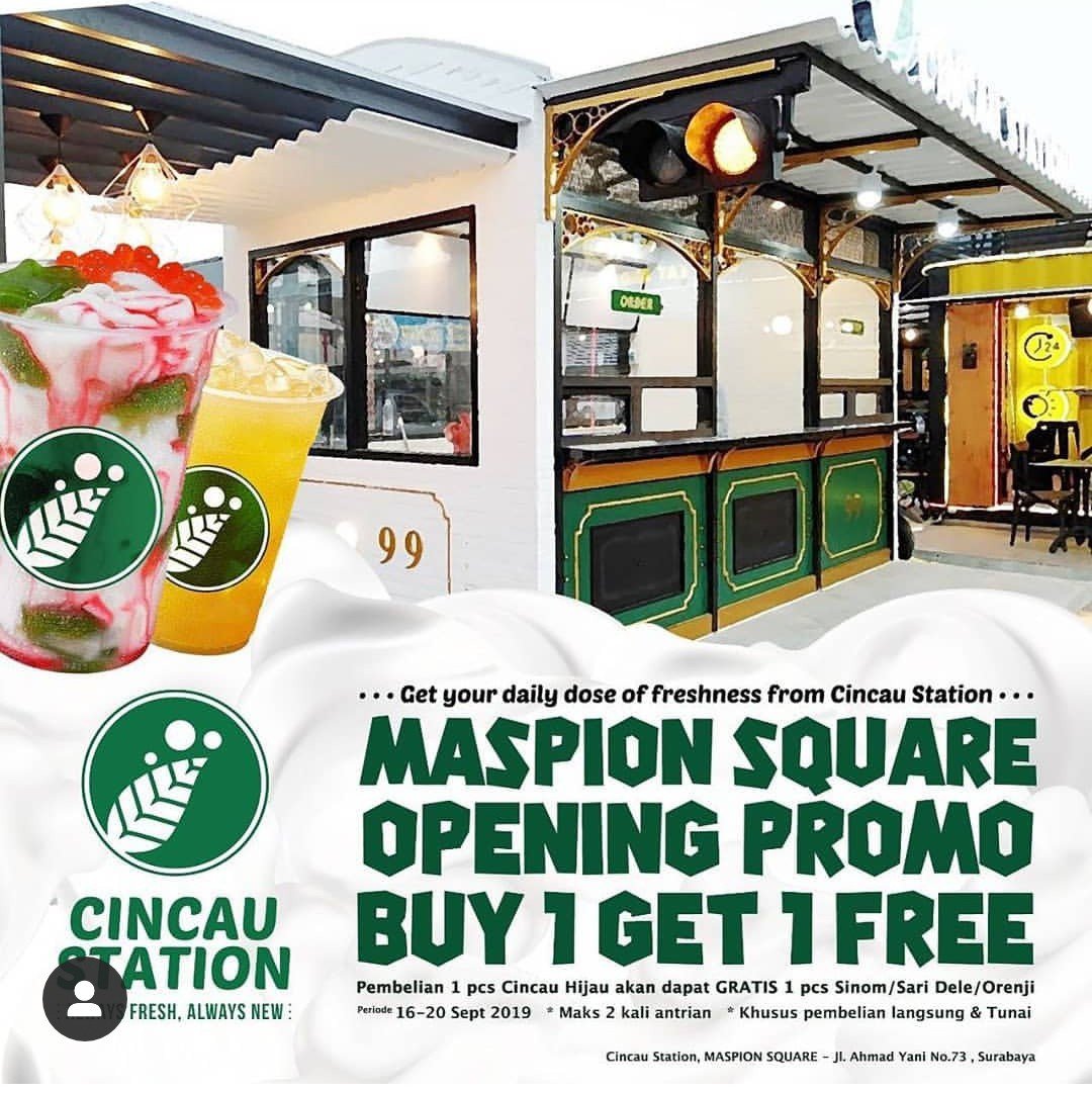 SURABAYAONLINE.CO, Surabaya — Ayo rame-rame kunjungi Cincau Station di Maspion Square Surabaya. Dapatkan promo buy 1 get 1 free. Nikmat rasanya dan segar rasanya.