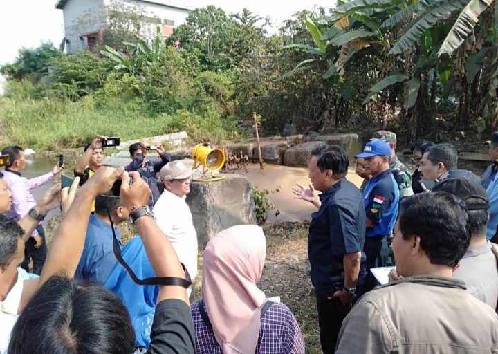 SURABAYAONLINE.CO, GRESIK – Bupati Dr. Sambari Halim Radianto yang didampingi beberapa Kepala Organisasi Perangkat Daerah (OPD) meninjau lokasi semburan gas bercampur air lumpur yang sedikit mengandung minyak tersebut, di Desa Sekarkurung Kecamatan Kebomas, Minggu (22/9).