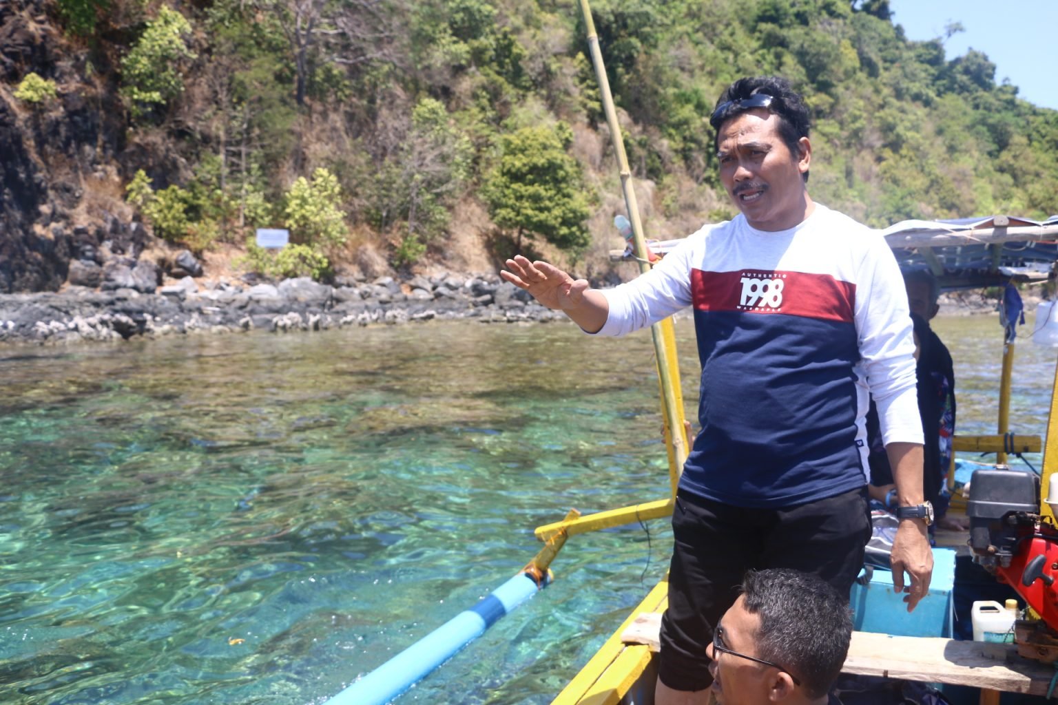 Dengan menempuh perjalanan laut sekitar 15 menit dariPantai Jembengan Desa Teluk Jati Dawang, Kecamatan Tambak, Wabup Qosim tiba di salah satu sisi pulau Cena. Pemandangan bawah laut dengan terumbu karang yang masih terjaga, membuat Wabup Qosim tampak twrkagum.