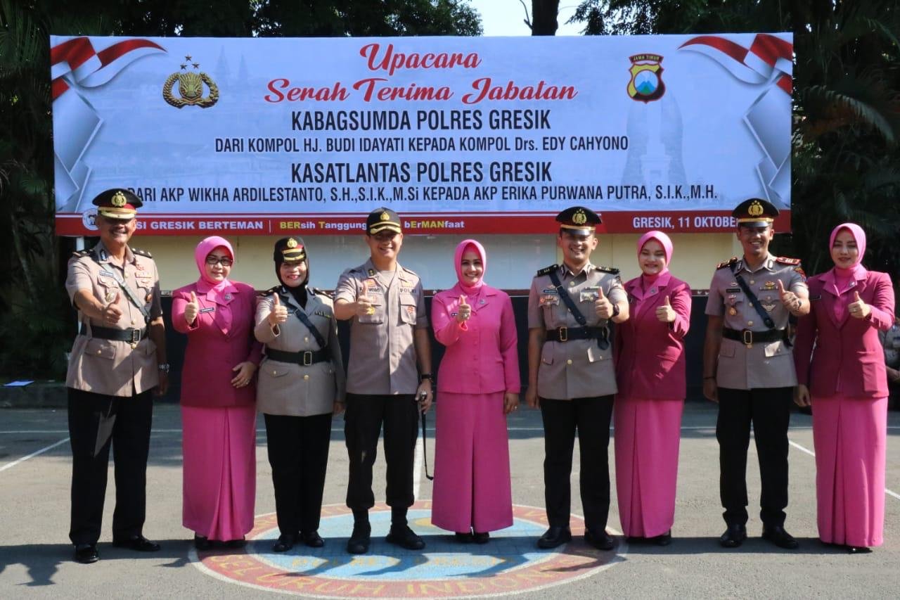 Acara sertijab tersebut turut dihadiri PJU Polres Gresik, Kapolsek jajaran Polres Gresik, seluruh anggota Polri dan ASN Polres Gresik.