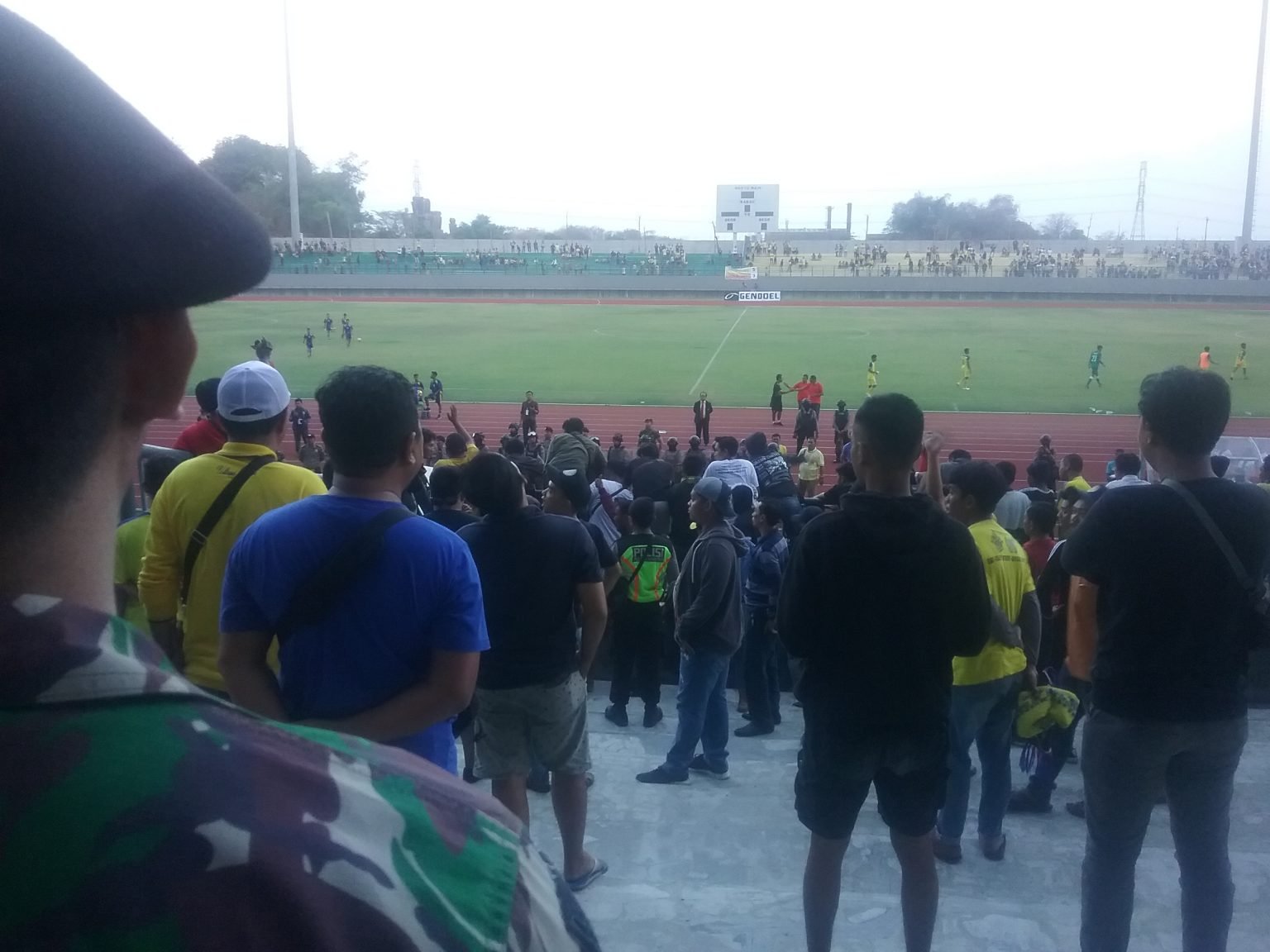 “Tidak apa-apa, yang terpenting tidak ada korban dan kerusakan yang berarti. Perlu digaris bawahi, tadi bukan kerusuhan melainkan mereka kecewa dengan hasil yang tidak sesuai yang diharapkan,” ujar kapolres saat memberikan arahan kepada anggotanya usai pertandingan.