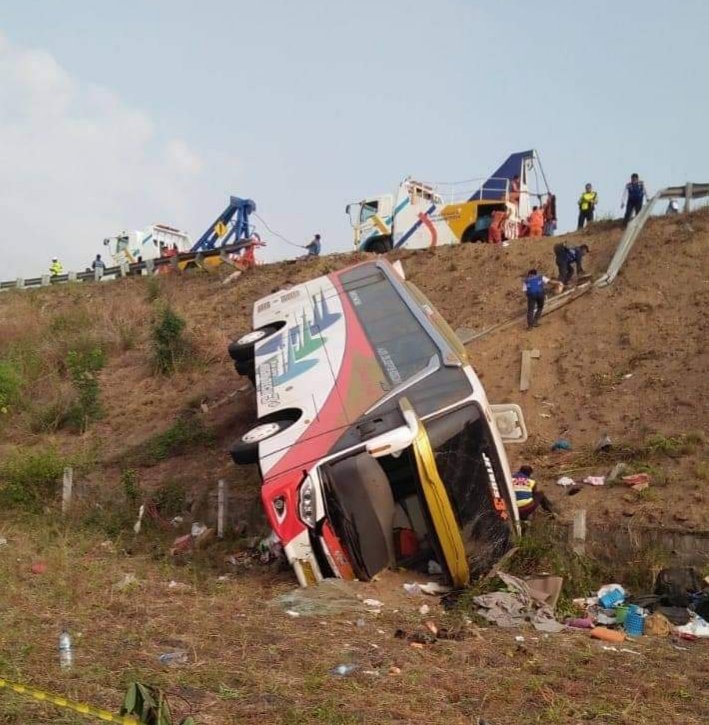 Sebelumnya, bus yang dikemudikan Masrur (42) warga Desa Luwungragi, Kecamatan Bulakamba, Kabupaten Brebes melaju dari arah barat ke timur. Saat di lokasi kejadian, bus tiba-tiba oleng ke kiri dan membentur pembatas jalan tol. Kemudian bus kembali oleng ke kanan hingga akhirnya terperosok ke luar jalur tol sedalam kurang lebih 3 meter.