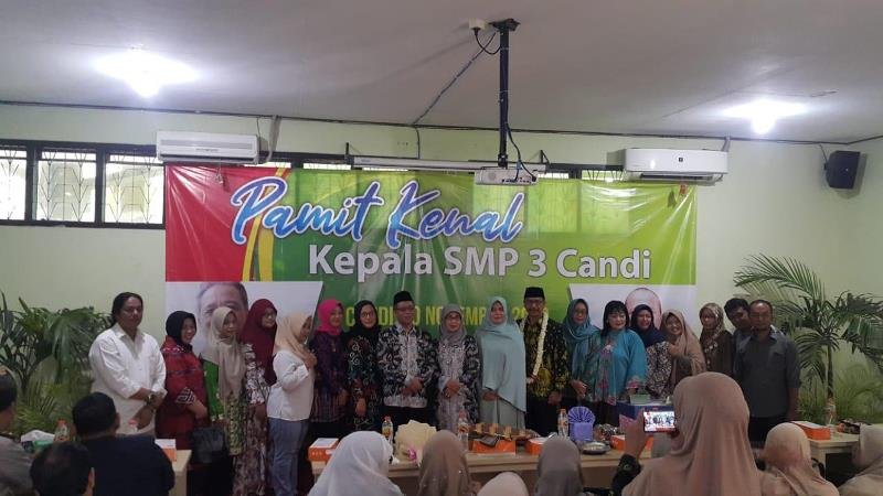 “Pamit kenal ini tak lain bertujuan untuk berpamitan bagi kepala sekolah yang lama dan memperkanalkan kepala sekolah yang baru di SMPN 3 Candi ,” tegas Taufik selaku Guru Matematika