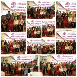 Tema reuni SMAN 7 Surabaya kali ini adalah “Bersama Peduli Sesama”, Reuni dilaksanakan di Hotel Garden Palace Surabaya, Sabtu (7/12/19). Reuni ini merupakan Reuni ke 40 bagi alumni angkatan 79.