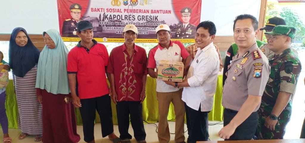 Saat menyerahkan bantuan di tiga kecamatan tersebut, juga dihadiri Kapolres Gresik AKBP Kusworo Wibowo, S.H., S.I.K., M.H, beserta kapolsek dan danramil masing masing wilayah.