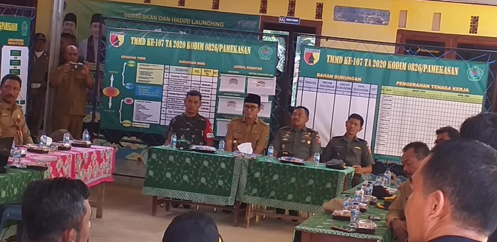 SURABAYAONLINE.CO – Pamekasan : Pelaksanaan kegiatan TNI Manunggal Masuk Desa (TMMD) ke 107 pada tahun 2020 yang dilaksanakan Kodim 0826/Pamekasan di tempatkan di Desa Rek Kerrek,Kecamatan Palengaan, Kabupaten Pamekasan, Letnan Dua Nanang Wijayanto Selaku Komandan SSK TMMD menerima kunjungan Tim Wasev dari Kodam V/Brawijaya Kolonel Inf Bambang Sudarmanto (Tim Wasev/ Sahli Bidang Ekonomi dan Kolonel Inf Agung Dwi kuncoro (Tim Wasev/Sahli Bidang Ilpengtek), Senin (16/3/20)