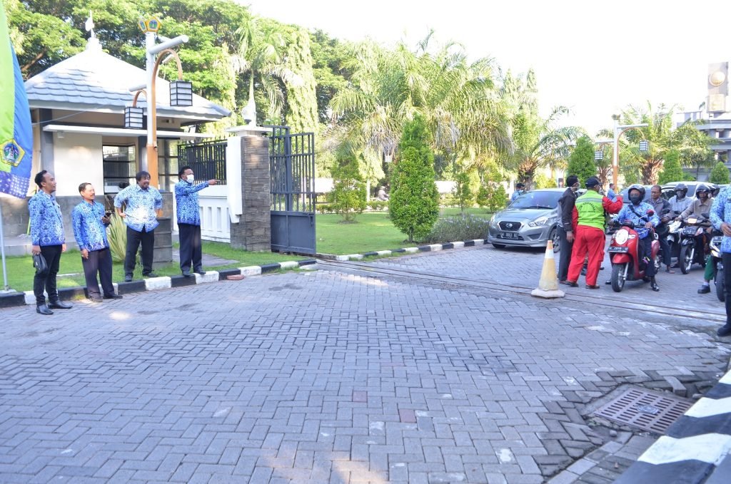 Sementara kepada ASN yang membawa roda 4, Bupati memerintahkan untuk segera membuka kacanya. Seketika itu petugas langsung mengarahkan thermo gun tersebut.