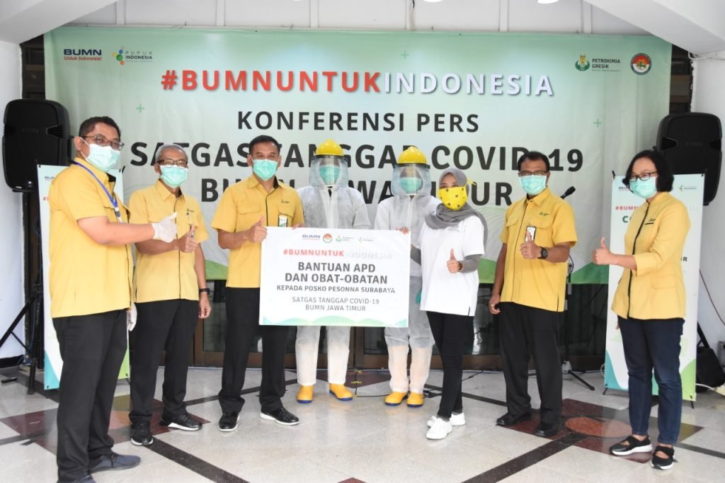 SURABAYAONLINE.CO, GRESIK – Petrokimia Gresik, perusahaan Solusi Agroindustri anggota holding Pupuk Indonesia memberikan bantuan Alat Pelindung Diri (APD) dan obat-obataan untuk empat rumah sakit dan dua Posko Satgas Tanggap Covid-19 BUMN di Jawa Timur.