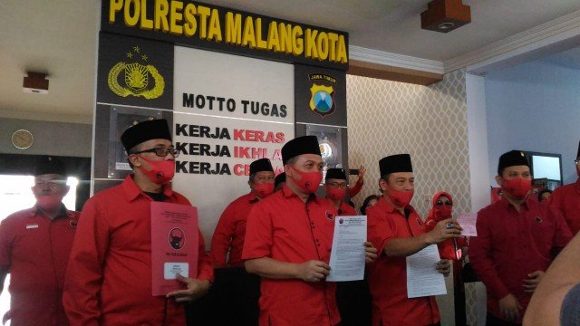 Sebagai kader dan petugas partai merasa harkat,martabat dan harga diri kami terganggu karena delik aduannya ada di Jakarta maka kami hanya bisa membuat delik aduan artinya kami mendorong Kapolresta Malang untuk meneruskan pengaduan dan masukan pada Kapolri untuk menindak tegas 3 pelaku yang kami laporkan di pengaduan kami dengan bukti-bukti dari apa yang kami dapatkan di media massa,instruksi partai kami agar seluruh kader partai menempuh jalur hukum dan tidak ada tindakan kekerasan dan balas dendam pada oknum-oknum yang telah melecehkan PDI Perjuangan karena negara kita adalah negara hukum maka semua harus diselesaikan secara proses hukum.