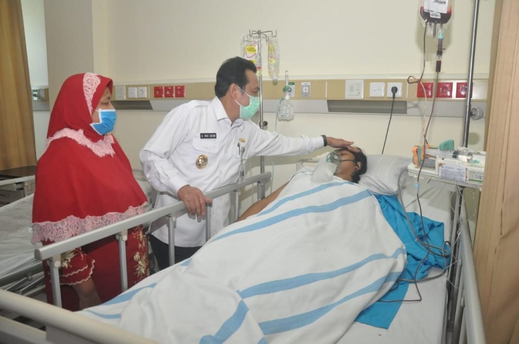 “Gimana keadaan kamu, sudah mulai membaik?,” sapa Wabup Qosim dengan penuh perhatian. “Masih terasa sakit pak, mohon saya didoakan ya pak. Saat ini sedang dirawat dan masa pemulihan,” jawab Sholihul