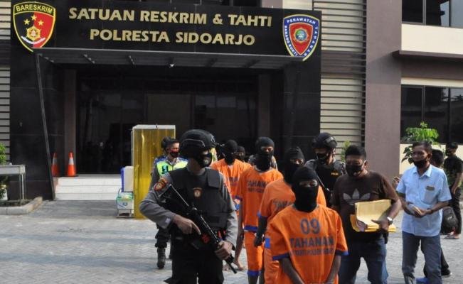 “Unit Resmob Satreskrim Polresta Sidoarjo bersama Unit Reskrim Polsek Sedati berhasil mengamankan lima tersangka dan satu orang lagi masih DPO,” ujar Wakapolresta Sidoarjo AKBP Deny Agung Andriana, Kamis (9/7/2020).