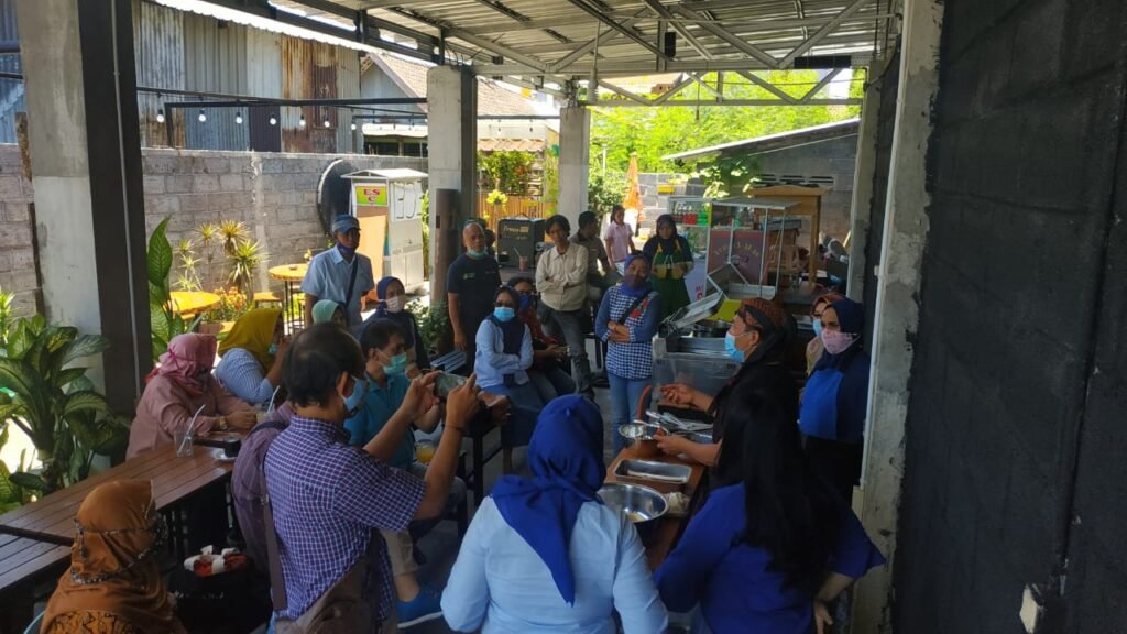 surabayaonline.co- Para ibu dan para bapak, terlihat serius mendengarkan penjelasan Cak Blangkon sebagai Founder dari Super Chicken Surabaya, saat pelatihan usaha kuliner di Warung Cak Blangkon, Balas Klumprik Surabaya, Selasa (29/9). Pelatihan usaha kuliner ini adalah salah satu dari Pelatihan rutin Bina UMKM DPC Partai Demokrat Surabaya. Bina UMKM sendiri adalah merupakan representasi dari gerakan Nasional Partai Demokrat dalam membina usaha UMKM
