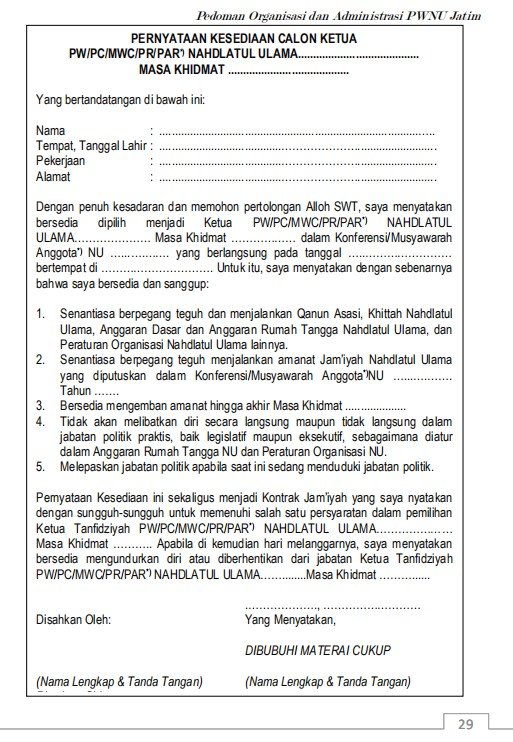 1. Bahwa ketentuan tersebut tentang Ketua PB/PW/PC yang mau mencalonkan diri sebagai pejabat publik, bukan mengatur pejabat publik/politik yang mencalonkan diri dan atau dicalonkan sebagai pimpinan PB/PW/PC NU. Kalau interpretasi dari AD/ART tidak boleh seorang pejabat publik/politik jadi Ketua PB/PW/PC NU maka mestinya Bupati Sigi Sulteng Moh. Irwan. S. Sos M. Si. Solehin Abuasir Wakil Bupati Oku Selatan Sumsel. H. Hildi Hamid Bupati Kayong Utara Ketua PWNU Kalimantan Barat kalau dianggap rangkap jabatan tidak dilantik oleh PB NU.