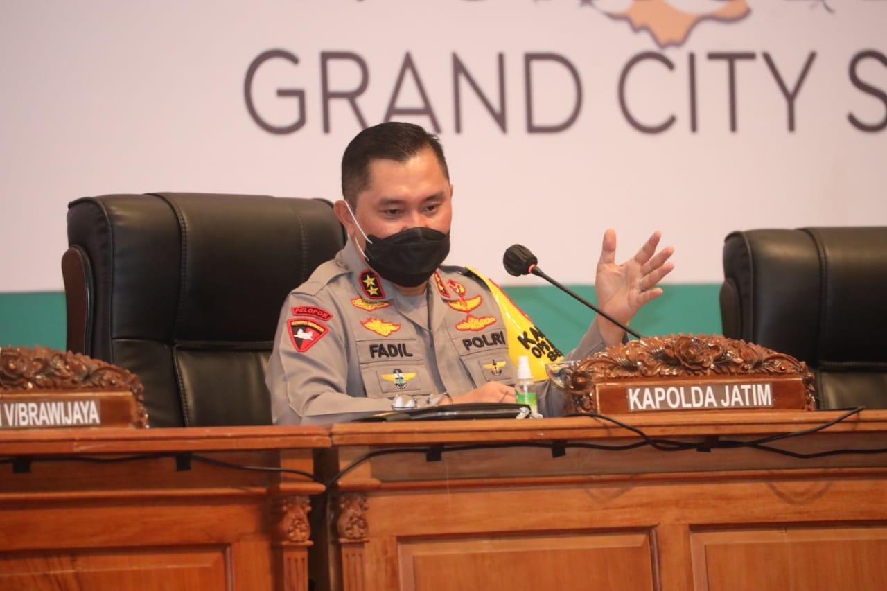 surabayaonline.co -KAPOLDA, Jawa Timur Irjen Pol Mohammad Fadil Imran, didampingi Pejabat Utama (PJU) Polda Jatim dan Kabid Humas Polda Jatim Kombes Pol Trunoyudo Wisnu Andiko, Senin pagi (19/10/2020), menggelar Rapat Koordinasi Ketertiban dan Keamanan Pilkada di Wilayah Provinsi Jawa Timur. Yang dilaksanakan di Grand City, Surabaya.