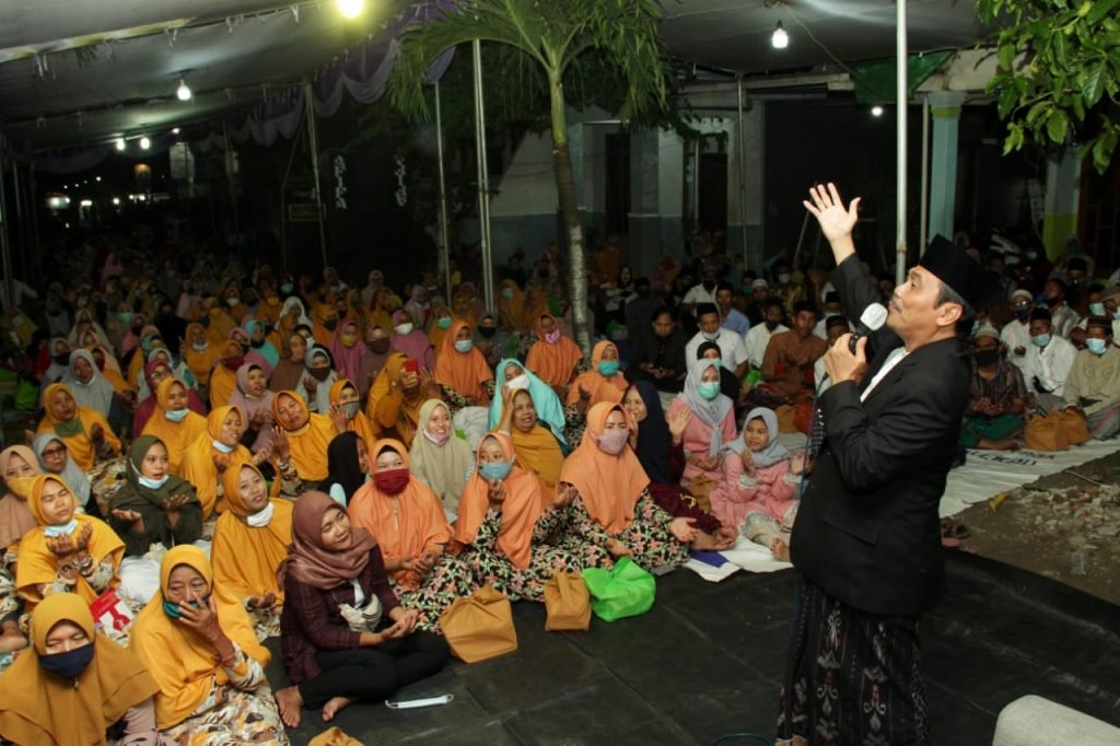 Saat menyampaikan tausiyah Qosim berpesan, untuk tetap mendoakan orang tua yang telah berpulang, salah satunya melalui majelis haul.
