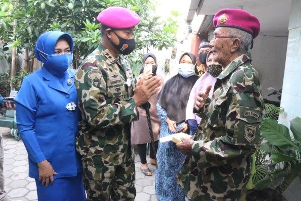 SURABAYAONLINE.CO-Dispen Kormar (Tegal Jawa Tengah). Dalam rangka memperingati Hari Ulang Tahun ke 75 Korps Marinir Tahun 2020, Komandan Korps Marinir (Dankormar) Mayor Jenderal TNI (Mar) Suhartono, M.Tr (Han)., didampingi Ketua PG. Jalasenastri Korps Marinir Ny.Etta Suhartono menyambangi pejuang kemerdekaan sekaligus pelaku sejarah cikal bakal terbentuknya KKO AL atau yang sekarang disebut Korps Marinir di kediaman Jalan Melati Kelurahan Kejambon Kota Tegal, Jawa Tengah. Senin (09/11/2020).