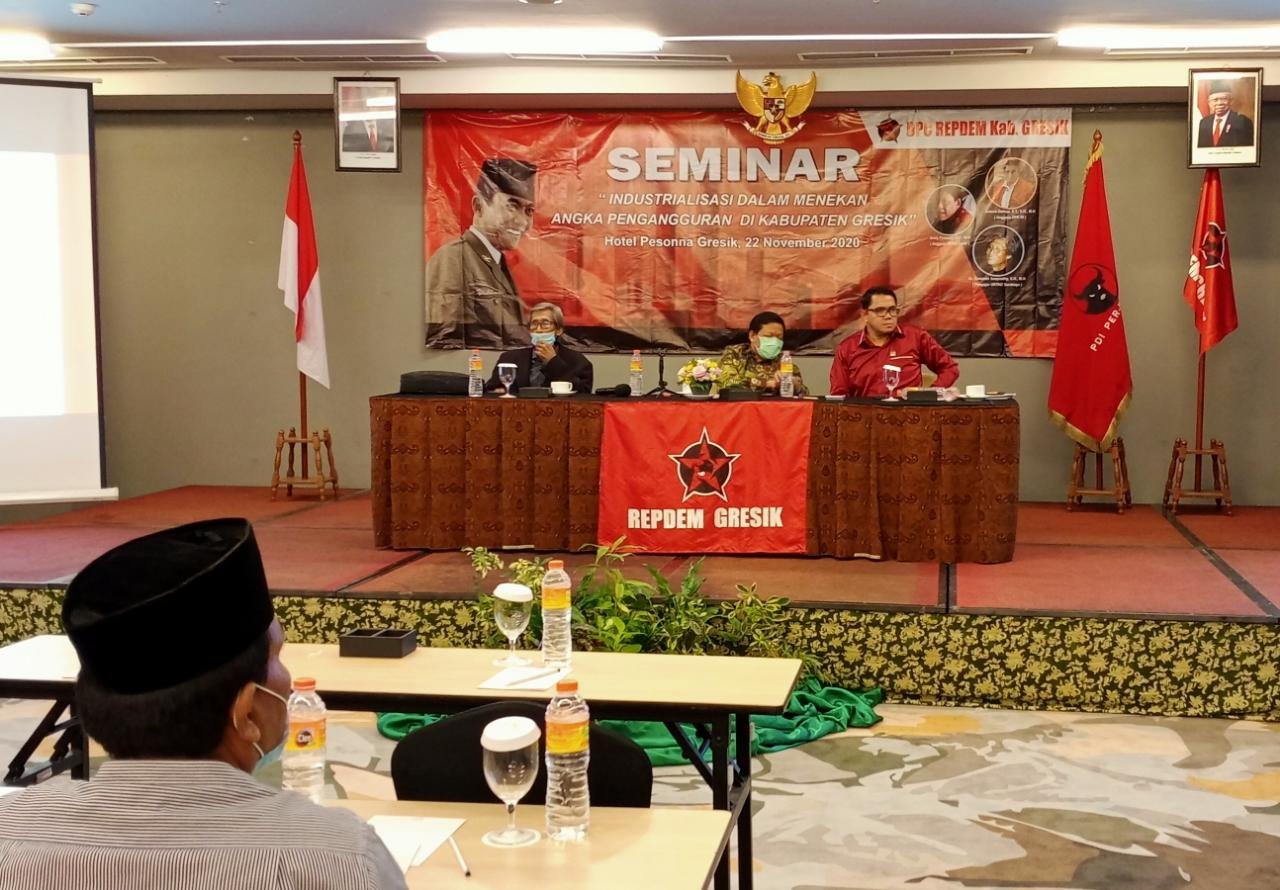 Hal ini diungkapkan Arteria Dahlan saat menjadi pemateri dalam seminar “Industrialisasi Dalam Menekan Angka Pengangguran di Kabupaten Gresik” yang diadakan Relawan Pro Demokrasi (Repdem) di Hotel Pesonna Gresik, Minggu (22/11) malam.