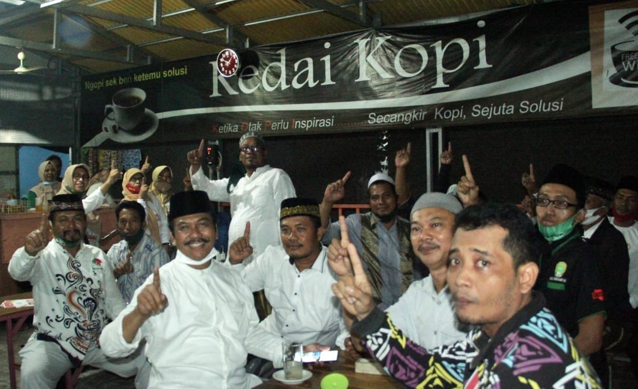 Dengan kemasan acara ngopi bareng di sebuah kedai kopi di RT 10, Pak Qosim mendapat sambutan yang hangat pendukungnya yang mayoritas bapak-bapak dan pemuda.