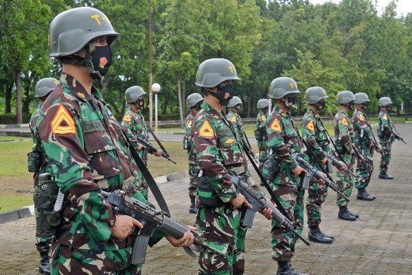SURABAYAONLINE.CO, Dispen Kormar (Sidoarjo)-Komandan Brigif 2 Marinir Pasmar 2 Kolonel Marinir Rudi Harto Marpaung secara resmi menutup latihan Praktek Pasukan (Tekpas) Taruna Akademi Angkatan Laut (AAL) Tingkat III Angkatan 67 Korps Marinir di Mako Brigif 2 Marinir Gedangan, Sidoarjo, Jawa Timur. Jumat (29/01/2021).