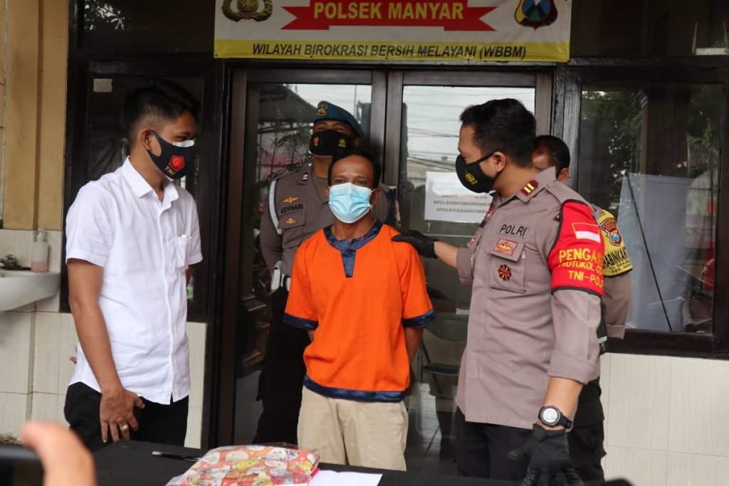 Kapolres Gresik AKBP Arief Fitrianto, melalui Kapolsek Manyar Iptu Bima Sakti Pria Laksana, mengatakan setelah mendapat laporan pihaknya berhasil menyergap pelaku saat ngopi di sebuah warkop di Desa Peganden.