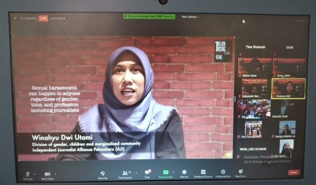 Kegiatan OBR tahun ini mengambil tema “Perempuan Indonesia bangkit lawan Covid-19 dan segala bentuk kekerasan, pemerasan, perampasan dan diskriminasi,” dimulai sejak jam 10.00 hingga 12.00 Wib. Acara ini dibuka dengan Pidato 5 koordinator One Billion Rising (OBR) Internasional yang memberikan apresiasi terhadap konsistensi OBR indonesia untuk meyuarakan persoalan perempuan ditanah air dan dilanjutkan speak out 35 organisasi baik di Indonesia dan luar negeri