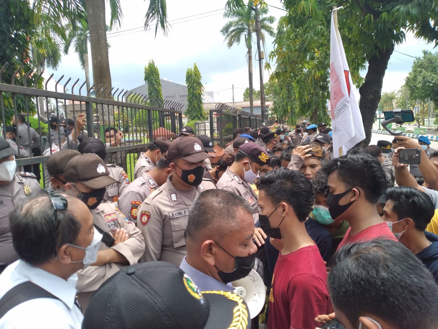 SURABAYAONLINE.CO, Sumenep– Demonstrasi sejumlah mahasiswa yang tergabung kedalam Forum Mahasiwa Kangayan (Formaka) di depan Gedung Dewan Perwakilan Rakyat Daerah (DPRD) Kabupaten Sumenep, Madura, Jawa Timur berujung ricuh