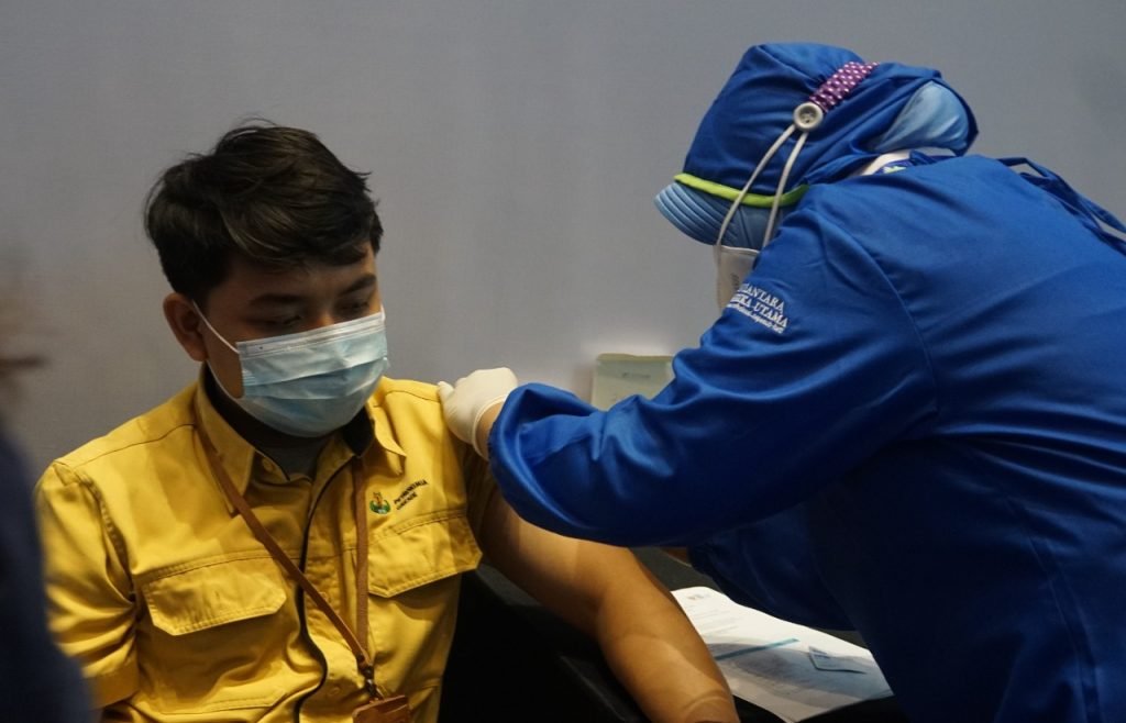 “ Sentra Vaksinasi Bersama BUMN untuk Wilayah Jawa Timur” di Surabaya, Minggu (28/3) terdiri dari karyawan, tenaga alih daya, pensiunan serta orang tua karyawan yang masuk kategori lansia (di atas 60 tahun).