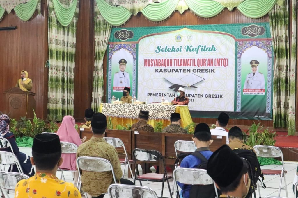 Dalam sambutannya, Wabup Bu Min mengatakan dari tahun ke tahun Kabupaten Gresik andalan Jawa Timur untuk MTQ di tingkat nasional, apalagi Gresik dikenal sebagai Kota Santri.