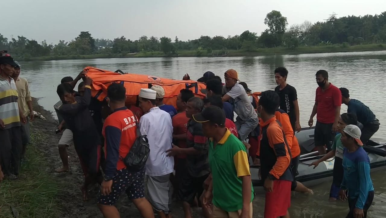 Keluarga lalu mendatangi lokasi kejadian, dengan dibantu warga serta petugas Badan Penanggulangan Bencana Daerah (BPBD) Gresik, korban akhirnya berhasil di temukan di tengah waduk dalam kondisi susah meninggal.