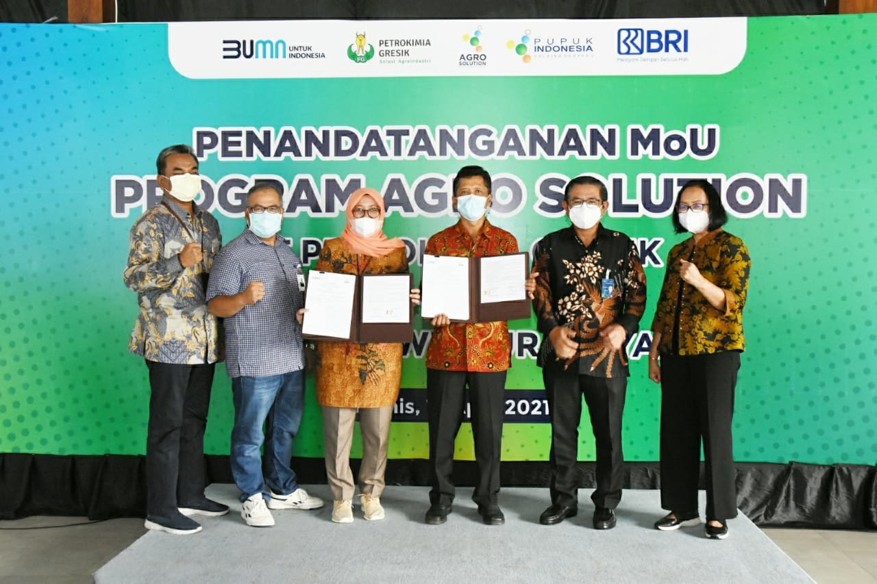 Direktur Utama Petrokimia Gresik Dwi Satriyo Annurogo menjelaskan melalui program Agro Solution yang diinisasi Pupuk Indonesia, pihaknya ingin membantu menghubungkan petani dengan Bank BRI Kantor Wilayah Surabaya untuk memberikan jaminan permodalan melalui skema Kredit Usaha Rakyat (KUR) Petani.