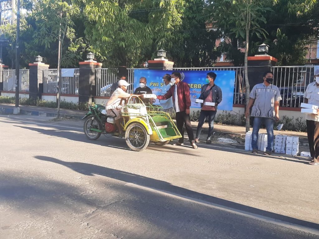 SURABAYAONLINE.CO, Sumenep– Dalam rangka menyemarakkan bulan suci Ramadhan 1442 H, Persatuan Wartawan Indonesia (PWI) Kabupaten Sumenep Madura Jawa Timur dan Said Abdullah Institute (SAI) berbagi takjil bagi pengguna jalan saat melintas di Jl. dr. Cipto, Kolor Kota Sumenep, Senin 19 Sumenep 2021.