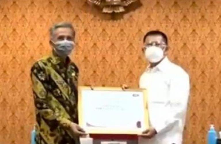 Penghargaan diserahkan Sekretaris Kementerian PAN RB Dwi Wahyu Atmaji kepada Bupati Sidoarjo yang diwakili Sekretaris Daerah Achmad Zaini. Senin, (12/4/2021). Di kantor Kementerian PAN RB, Jakarta, pada acara sosialisasi Permenpan RB nomor 8/2021 tentang sistem manajemen kinerja PNS.