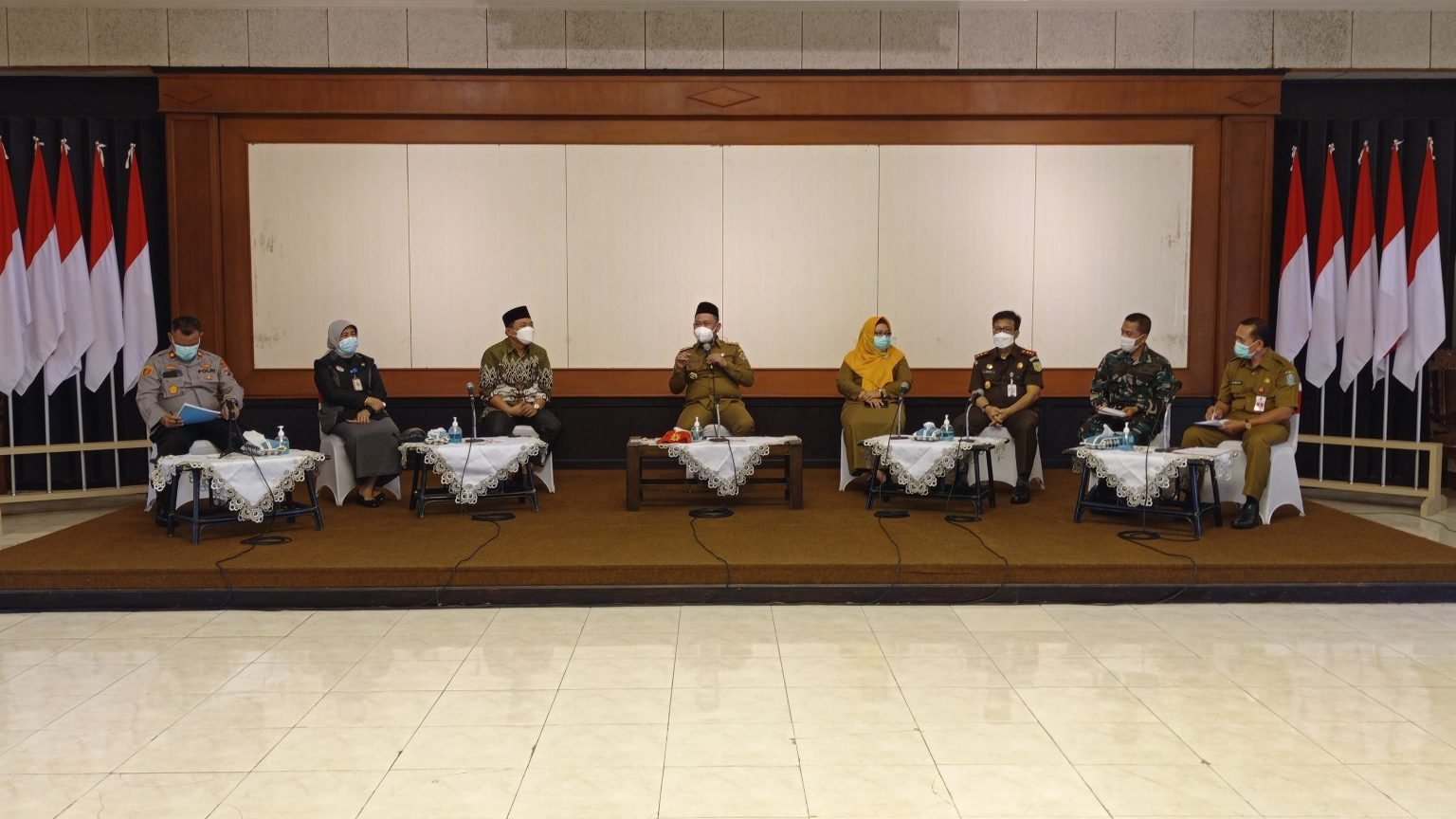 Rapat yang juga dihadiri Wakil Bupati Aminatun Habibah, seluruh anggota Forkopimda, perwakilan Nahdlatul Ulama (NU), Muhammadiyah, LDII, Dewan Masjid Indonesia (DMI).