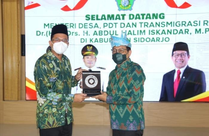 Guna memberikan apresiasi kepada pelaku percepatan pendataan MDGs seluruh Indonesia pada hari ini, Sabtu (6/6/2021)bertempat di Pendopo Delta Wibawa Menteri Desa Tertinggal dan Transmigrasi RI Dr. (H.C) Drs. H. Abdul Halim Iskandar, M.Pd bersama Bupati Sidoarjo H. Ahmad Muhdlor, S.Ip memberikan penghargaan kepada Kepala Desa, Pendamping Lokal Desa dan Camat yang telah berperan aktif dalam pendataan SDGs (adalah upaya terpadu mewujudkan desa tanpa kemiskinan dan kelaparan) di wilayah Kabupaten Sidoarjo