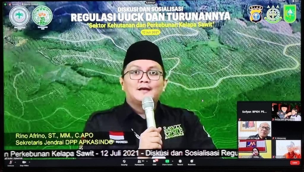 Pembahasan ultimum remidum tersebut muncul dalam diskusi webinar DPW APKASINDO (Dewan Pimpinan Wilayah Asosiasi Petani Kelapa Sawit Indonesia) Riau dan GAPKI (Gabungan Pengusaha Kelapa Sawit) Riau yang bertemakan “Sosialisasi Regulasi UUCK/Turunannya & Cegah Karhutla”, Senin (12 Juli 2021) yang menghadirkan pembicara Kombes Pol Dr. Endang Usman, SH., MH. (Kabidkum Polda Riau), Dzakiyul Fikri, SH., MH. (Asisten Perdata dan Tata Usaha Negara Kejati Riau), Dr. Ir. Mamud Murod, MH. (Kepala Dinas LHK Riau), Sofyan, S.Hut,M.Si, Kepala Balai Pemantapan Kawasan Hutan Wilayah XIX, Dr. Sadino,S.H.,MH. (Akademisi dan Praktisi Hukum Kebijakan Kehutanan), Samuel Hutasoit, SH., MH.,C.L.A (Dewan Pakar Hukum DPP APKASINDO), serta Eddy Nofiandy,SH.,MH. (Ketua Kompartemen Hukum dan Advokasi GAPKI Riau), acara ini langsung di Pandu oleh Sekjend Apkasindo, Rino Afrino, ST., MM.,C.APO. Hadir juga pada acara tersebut Ketua DPW APKASINDO Riau, KH Suher dan Ketua GAPKI Riau, Djatmiko K. Santosa. Acara sosialisasi ini secara resmi dibuka oleh Dewan Pembina& Penasehat DPP APKASINO, yang diwakili oleh Kiai T.Rusli Ahmad.