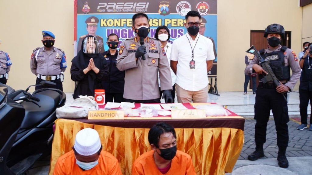 Tersangka IR, 30 tahun, berhasil ditangkap polisi di kamar kosnya di Jalan Brigjen Katamso, Waru, Sidoarjo 31 Juli 2021. Di lokasi penangkapan petugas mendapatkan barang bukti sabu sebanyak tiga pocket dengan berat total 108,66 gram, satu timbangan elektrik dan dua handphone untuk komunikasi saat transaksi.