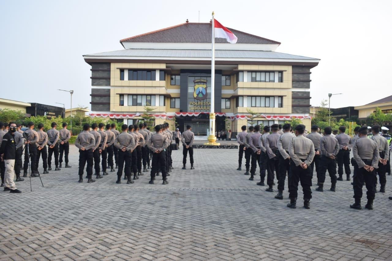 “Dalam momen peringatan satu suro tahun ini, sebanyak 325 personel kami siagakan, guna menjaga kondusifitas kamtibmas di wilayah Kabupaten Sidoarjo dan untuk berikan rasa aman serta nyaman masyarakat,” ujar Kapolresta Sidoarjo Kombes Pol. Kusumo Wahyu Bintoro, usai pimpin apel pengamanan malam satu suro tahun atau 1 Muharram 1443 H di Mapolresta Sidoarjo, Senin (9/8/2021) sore.