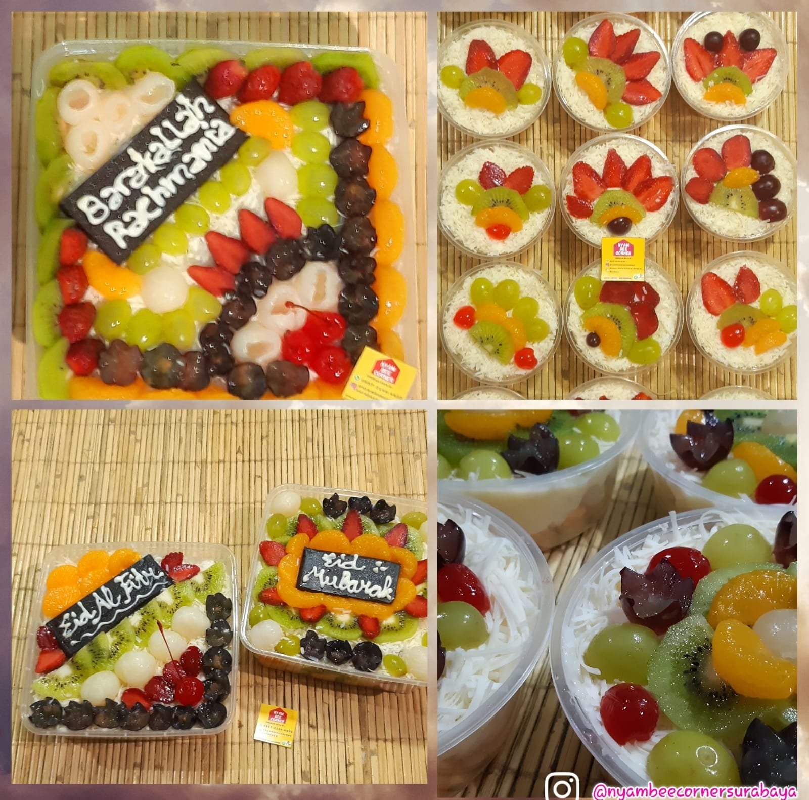 Cara pembuatan, potong buah-buahan seperti dadu, lalu diberi jelly/nata de coco sesuai selera, lalu disiramkan kuah susu/saus sesuai selera.