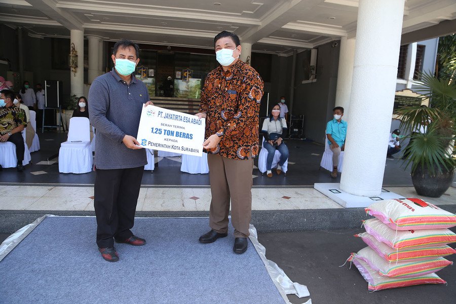 Kali ini, Pemerintah Kota (Pemkot) Surabaya menerima bantuan dari tiga stakeholder atau perusahaan. Bantuan itu terdiri dari, 1.250 kilogram beras dari PT Jaya Tirta Esa Abadi. Lalu, 1.001 botol probiotik Pro EM-1 dari PT Agro Mitra Alimentari (PT AMA). Kemudian, 700 paket minuman herbal terdiri nutrijell dan anget sari dari PT Forisa Nusapersada.