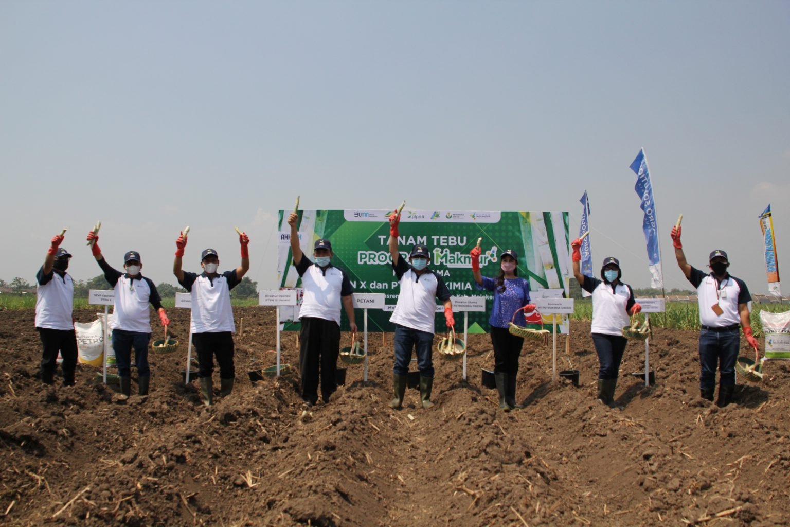 “Tanam perdana tebu ini sebagai langkah nyata sinergi antara PTPN X dengan Petrokimia Gresik dalam upaya peningkatan produktivitas tebu,” terang Tuhu Bangun, Direktur PTPN X.