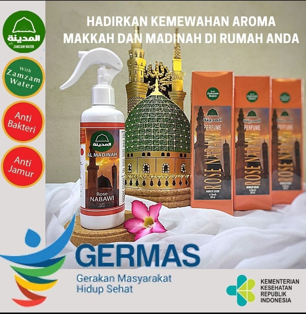 GERMAS (Gerakan Masyarakat Hidup Sehat) dari Kementrian Kesehatan. Ruangan keluarga anda menjadi lebih BERIMAN (Bersih, Indah dan Aman). Produk ini ada banyak item dan jenisnya seperti, parfum, parfummobil, airfreshene aerosol, sajadah, rosenabawi, alrawda, hajaraswad, kiswah, zamzam, almadinah.