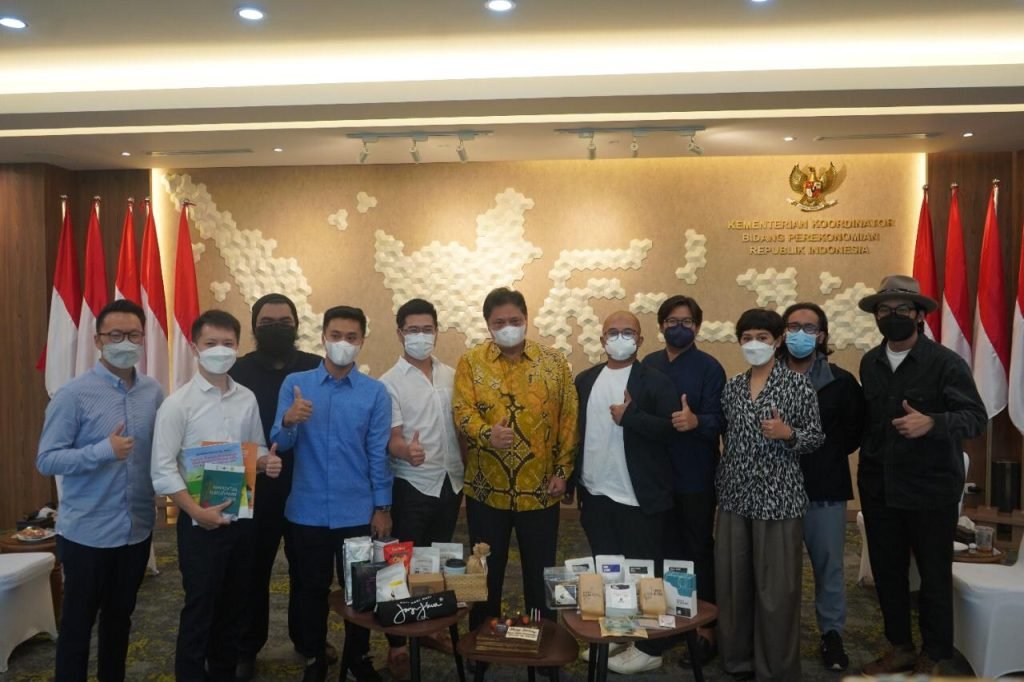 Airlangga Hartarto selaku Menteri Koordinator Bidang Perekonomian menyambut kedatangan para pelaku industri kopi di Kantor Kementerian Koordinator Bidang Perekonomian bertepatan dengan hari Kamis (01/10).