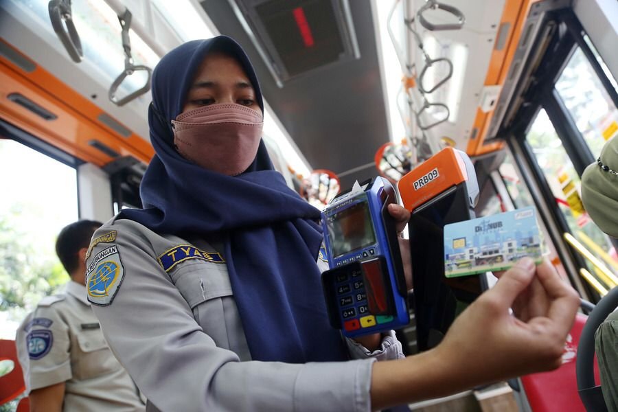Selama ini, sistem pembayarannya menggunakan sampah botol plastik, menggunakan pembayaran non tunai melalui scan QRIS, dan kali ini ditambah dengan menggunakan sistem tapping pakai kartu e-money.